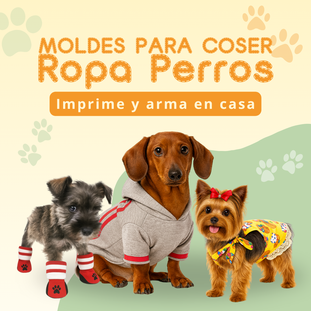 Incluye todos los moldes para imprimir en tamaño real en cualquier impresora casera y en diferentes tallas para cachorros hasta perros adultos.